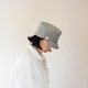 他にはあまりないデザイン。ヴィンテージ感も漂う個性的なキャスケット。ストレートなシルエットで顔周りもすっきり見えるデザインです