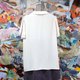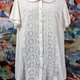 **米白色前胸繡花小圓領寬鬆摺邊尼龍短袖襯衫恤衫日本昭和文青古著**