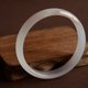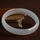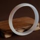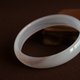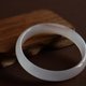 冰感沁潤的硃砂瑪瑙細平安鐲,56MM的圈口,整體呈紫羅蘭色調,外形圓潤冰感材質,水潤柔滑,熒光明顯,帶天然紋理性狀,如陽光蒸騰濃霧掩映的遠山,硃砂點形成了山的輪廓與形狀,陽光穿透霧氣,光也便有了形狀。平安鐲是一種內圈平、外圈平、橫切面為平和微曲的玉鐲。平安鐲寓意著平平安安、和和美美,是一種非常適合日常佩戴的玉鐲款式。
