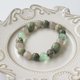 【特徵】採用了綠水晶、地圖石、灰月光製成的晶石手串。圖樣多變得地圖石,配合綠色晶瑩的綠水晶與灰白的灰月光,仿佛讓人置身在森林中一般,感覺舒適治愈。配搭了多面體的地圖石增添個性。長期佩戴能促進人淨化身心,還能起到治愈作用,促進人的健康。