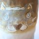 這只馬克杯乍看是釉色變化低調侘寂風,仔細看在釉色中躲著一隻害羞的貓咪。以瓷土手捏成型,透過高溫燒成展現出堅固與耐用的特性,能安全盛水,成為日常飲用的理想選擇。杯身以褐色/灰色/暖白色為基底,局部流動的深淺交疊米白色