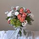 3.鮮花花材:粉橘玫瑰、白桔梗、小綠繡球、綠石竹、銀葉菊。