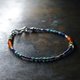 カーネリアンとスクエアターコイズ、ハーキマーダイヤモンド、小さなラピス、カレンシルバーを繋いだ華奢なブレスです。
