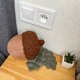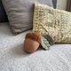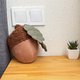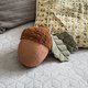 Acorn constructed of soft faux suede fabric, boucle fabric and stuffed with non allergenic synthetic fluff. Beautiful leaves made from 100% linen.