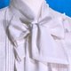 衣況/ 無內裏.布料有條紋紋路與點狀織紋.織紋處有光澤感.前襟有精緻刺繡邊條.隱藏釦設計
