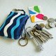 Lovely日本布【波紋塗鴉拉鍊鑰匙包、藍】放得下約7把鑰匙