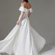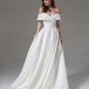 off shoulder corset wedding dress maxi length, satin wedding dress plus size