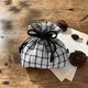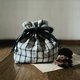 ラティスチェックリネンのミニ巾着ポーチです。