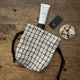 表は、キナリベースで黒いラティスチェック柄リネン(綾織り)、内側はキナリリネンと2枚仕立てで丈夫な作りとなっています。