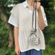 スマートフォンやイヤフォン、鍵類、眼鏡、小銭入れ、お薬、マスク、ハンカチなどが入る大きさ。