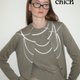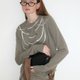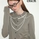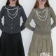 卡其色 美麗奴羊毛 珍珠項鏈針織背心開衫兩件套