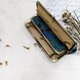 讓信用卡、現金、手機(iphone 7 plus)或簡易的化妝品如口紅、蜜粉、眉筆...等等都妥當的收納在一個手拿包內