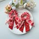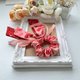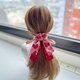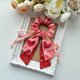 使用兩款不同的美國品牌棉布搭配製作成長尾蝴蝶結、加上緞帶和釘珠做成的髮圈,氣質浪漫,無論上班或休閒聚會都適合配戴。