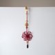 - 晴れやかに花弁多めに結んだ真っ赤な飾り結びと、 深めにしっかりと発色するチェコダガービーズ 金色の金具をオリエンタルな雰囲気に組んで