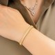 以一系列長方形切割晶石精緻排列,宛如光影交織的軌跡,在腕間綻放低調卻奢華的光芒。每顆晶石皆經精密鑲嵌,搭配金屬底座與流線連結,展現出極簡與高雅的完美融合。