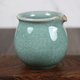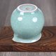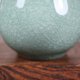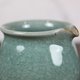 葉老師的哥窯冰裂,燒製手法成熟,透如湖水的藍綠色,配上細緻的開片,在不同光源下時有時閃亮,有時青鬱,呈現土與釉的一種交融感。而細密的開片再均勻與茶湯接觸後,紋理漸深,更顯潤澤。
