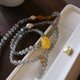 天然原礦拉長石 珍珠蜜蠟設計多圈手串手鍊s - 手鍊/手環 - 半寶石 灰色