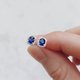 天然藍寶石 (Sapphire),橢圓形切割約 4.7 x 3.6 mm,兩顆共 0.74 ct,深邃皇家藍色。