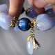 相佐頂級**藍晶石**,寶石**火彩美、色度表現佳、帶眼、帶星光,多層次的深邃藍色調**,美得無與倫比。鍊身點綴以冰藍紋瑪瑙水滴墜、K金墜飾,是為靜謐優雅、華美富麗之美物。