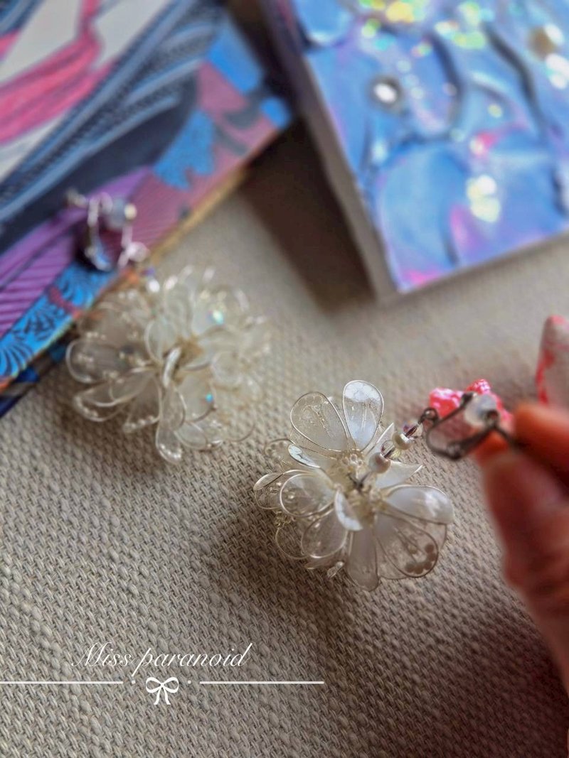 - 半透明系列-花串款貼耳樹脂耳環