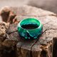 The wood resin ring "Polar Night" with wolf is made of black hornbeam wood and a jeweler's resin of blue color with green lines. Inside the ring, beautiful patterns of the northern lights can be seen. The wolf inside the ring howls at the moon.