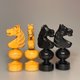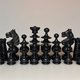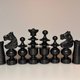 A unique French Regency style chess set from 1935 to 1945. A rare find. One of the most distinct old chess tradition chess set designs. Good vintage condition with beautiful patina.  One small chip (white queen) was accurately repaired. Please study photos. King: 10 cm Chess pieces only, no board. If you need a matching board, please write a personal message.