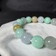這條手串我們挑了粉色調的各種顏色珠子來搭配,有淡紫、但綠、淡黃、淡藍,還加上了幾顆冰種料,讓整條手串看起來粉嫩又有水頭,讓翡翠珠子看起來變可愛。