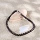 這款項鍊以天然炫彩黑珍珠搭配銀色元寶扣,象徵財富與優雅。珍珠色澤多變,展現個性魅力與高級品味。