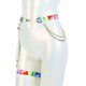 Belt with removable garter is made of elastic straps with satin finish and decorated with rainbow ribbons and chains. Can be adjusted for a perfect fit.