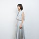 4. 腰間銀色鈕扣點綴,簡約大方又不失高雅,裙身銀白色調,營造出柔美氣質