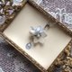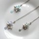 カラーリングは清楚なブルー。コットンパールとスワロフスキーを一粒づつ添えた、派手になりすぎない上品な仕上がりとなっています。
