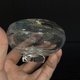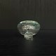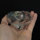 這件玻璃花瓶寬約7公分、高約4.5公分,重量為152克。瓶身透明圓扁,底部包覆均勻細泡,視覺輕盈。可作為極簡小型插花瓶,也可作為擴香、香丸承盤,提升桌面細節。