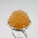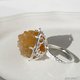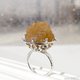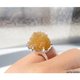 球体状に結晶化した水晶の原石を、唐草と透かし模様の台座にセットしたリング。