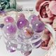 每一枚球皆是**萬中選一**,寶石晶體透、水光美,閃現**彩虹光**,紫、綠相間紋理浪漫,其中一枚螢石球紋理如**花(花開富貴)**,難得可貴,品相極美。