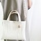 採用蓬鬆輕盈的絎縫材質, 搭配淡色系的迷你包。 斜背帶採用麥克拉姆 設計,與冬季穿搭也 非常相配𓂃𓍯