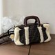 奶白羊羔毛+深棕老花帆布再加上酒紅皮手柄🤎
