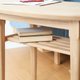 為了能夠與生活更加貼近,在塗裝方面採用每當手觸碰桌子就能感受到木材原本舒適質感的油塗裝。能夠滲透到木材內部的油塗裝,特徵是外表界在無光澤到半光澤之間。感覺就像木材仍然生長著一般,成為生活的一部分,並照亮了房間。