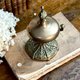 如藝術品般的古董桌鈴,鑄造底座上刻有複雜且生動的莨苕葉紋等古典植物圖騰,頂部飾有尖頂裝飾。功能完好,輕輕彈壓邊錘,即發出清脆悅耳、餘音繞樑。在 19 世紀的歐洲貴族家庭、高檔餐廳或酒店,它通常放置在餐桌旁、書桌上或接待櫃檯,用於呼喚僕人、服務員或引起注意。它代表了當時優雅的生活儀式和服務文化。現今依然實用的桌鈴,也是一件小型的雕塑藝術品。