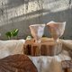 花瓣般的杯身是裹著流動的粉彩釉浪,
