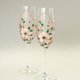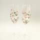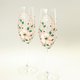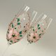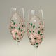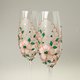 Set of 2 Romantic Wedding Crystal Glasses Pink Emerald Rose Gold Floral design. Decorated with Emerald Swarovski Crystals and crystal rhinestones.Lovely color combination of pastel pink, emerald green and rose gold. One of a kind CRYSTAL champagne glasses, READY to SHIP!