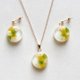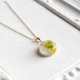 グリーン、イエロー、ホワイトのお花をぎゅっと詰め込んだブーケのような華やかなペンダント。