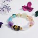 結合時下流行的彩虹元素、五行概念、蘊含吉祥寓意之六字真言、富貴回紋,使多寶釧兼具傳統多種寶石的豐富度、與現代首飾的時尚造型感,搭配性屬飾品中最高者,相當百搭,並且每一個角度都美的獨一無二。