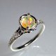 さまざまな表情と色彩が魅力的なオパールを、透かし模様の台座にセッティングしました。