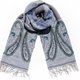 ▲喀什米爾靠近喜馬拉雅山,為了對抗特殊的酷寒氣候,水煮羊毛是喀什米爾利用當地自然環境發展出來的一種細緻的工藝, 當地海拔高,水的沸點低,早晨在太陽上升時,將羊毛製品,放入融化的高原雪水中浸泡,之後加熱沸煮。到了傍晚太陽下山時,再把羊毛製品在月光下曬,經由繁複工續後的產品, 不但可以清除掉一些雜質,羊毛產生收縮,纖維之間更加地緊密,最後經由婦女手工編織及刺繡,呈現一件件顏色及繡法獨特的織品