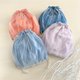 無地のコットン生地と、薄手のチュールを組み合わせて巾着ポーチを作成しました。