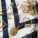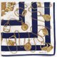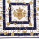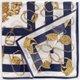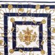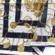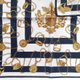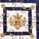 Elegant vintage handkerchief featuring an intricate pattern of gold chains, charms, and navy frames gracefully interlaced over a soft white background. At the center lies the iconic Coat of Arms — a classic crest with a knight’s helmet, lion, and horse symbolizing honor, courage, and timeless. Crafted from fine lightweight cotton with refined print details, this piece perfectly embodies the elegance of vintage design — ideal for collectors or for styling with understated sophistication.