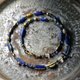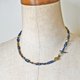 モザイク模様ローマングラスと多彩ブラス、アンティークブルービーズを繋いだネックレスです。