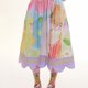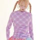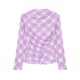 - アウトレット品 重ね着に最適な、2 色の手描きの花柄チェック柄のシワ加工メッシュボトムシャツ パープル Lサイズ