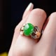 - 【名稱】冰種正陽綠翡翠蛋面戒指 18K金鑽石 【尺寸】裸石尺寸:12.7x9.8x6mm 鑽石0.53ct 金重5.95g 國際12圍 【產地】緬甸 【顏色】綠 【備註】天然緬甸翡翠A貨 【編號】瓔珞戒指047