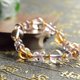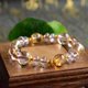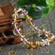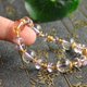 材質選用高透明度近淨體水晶,在光線折射下散發出溫潤的玻璃光澤。黃水晶圓珠同純銀鍍金花托與純銀鍍金算盤珠配件形成色彩過渡。黃水晶晶體內部僅存微量冰裂與棉絮,既保留天然印記又不失純淨度。通過巧妙的材質組合與金屬配件烘托,營造出清透與貴氣兼具的佩戴效果。